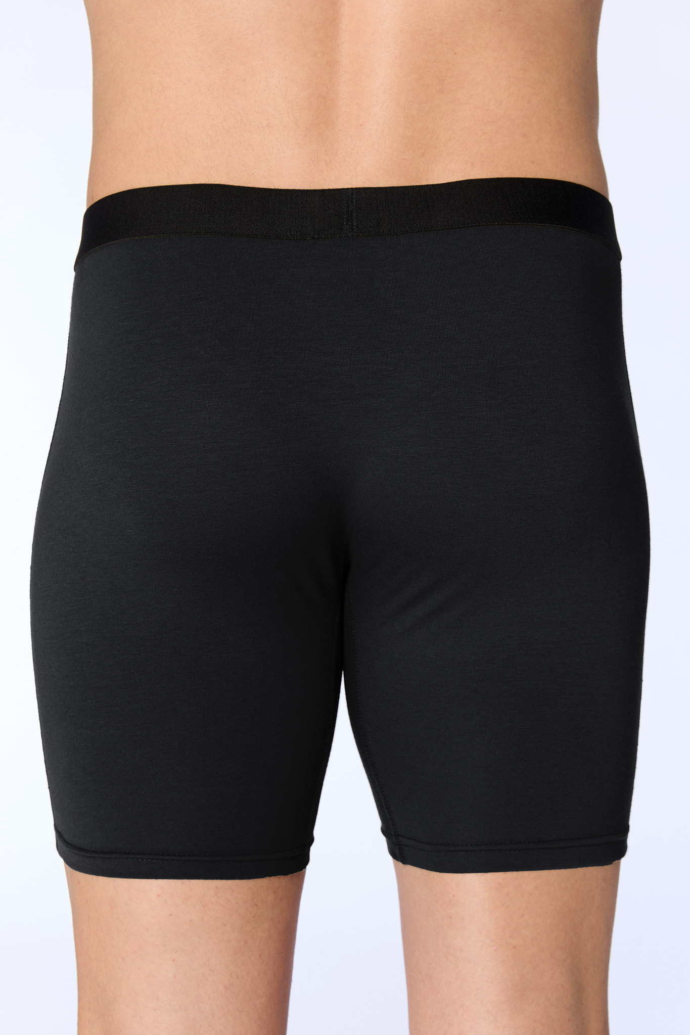 Lange Trunkshorts, die eng anliegen und in mittlere Länge auf dem Oberschenkel sitzen.
