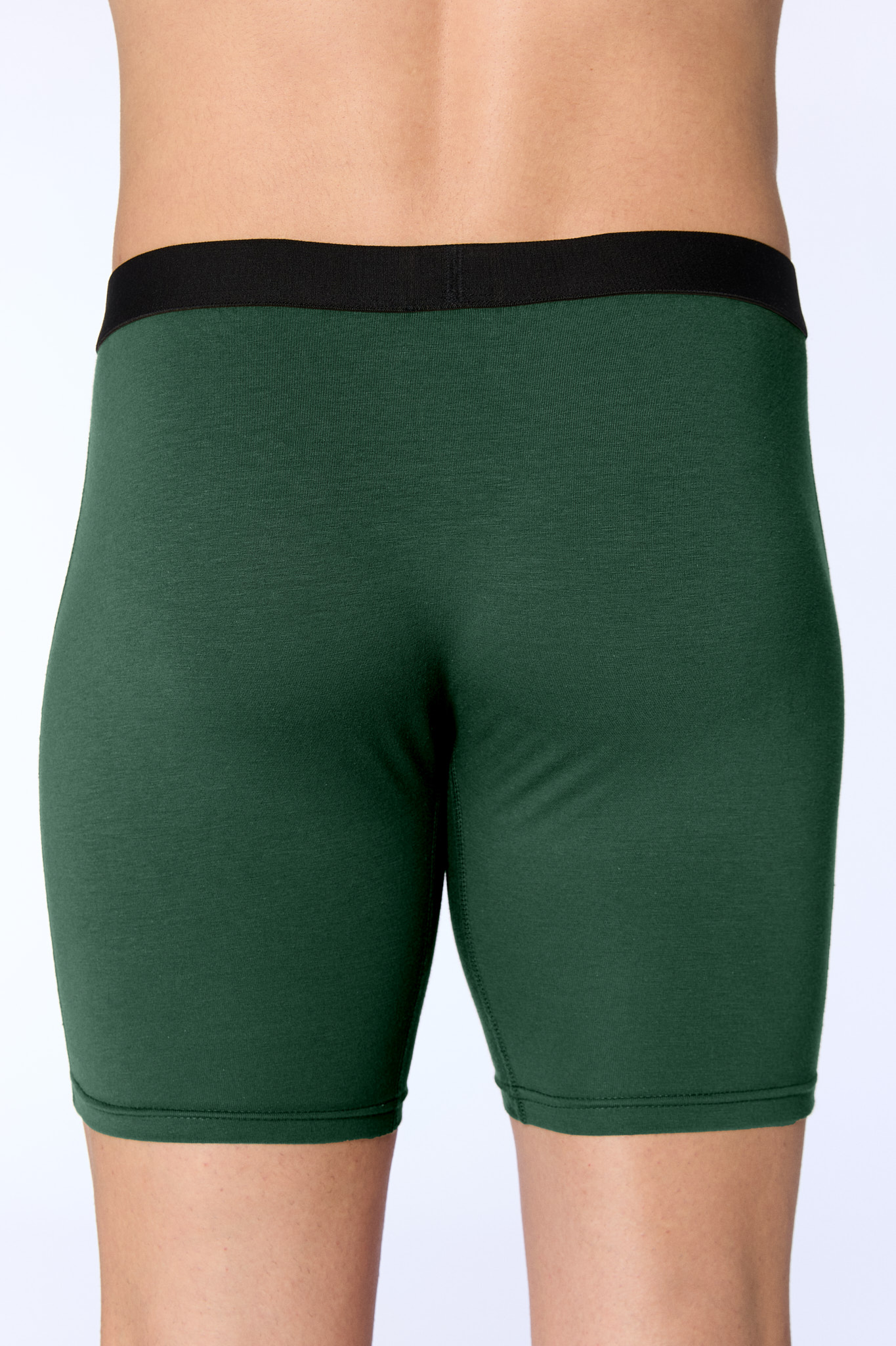 Lange Trunkshorts, die eng anliegen und in mittlere Länge auf dem Oberschenkel sitzen.
