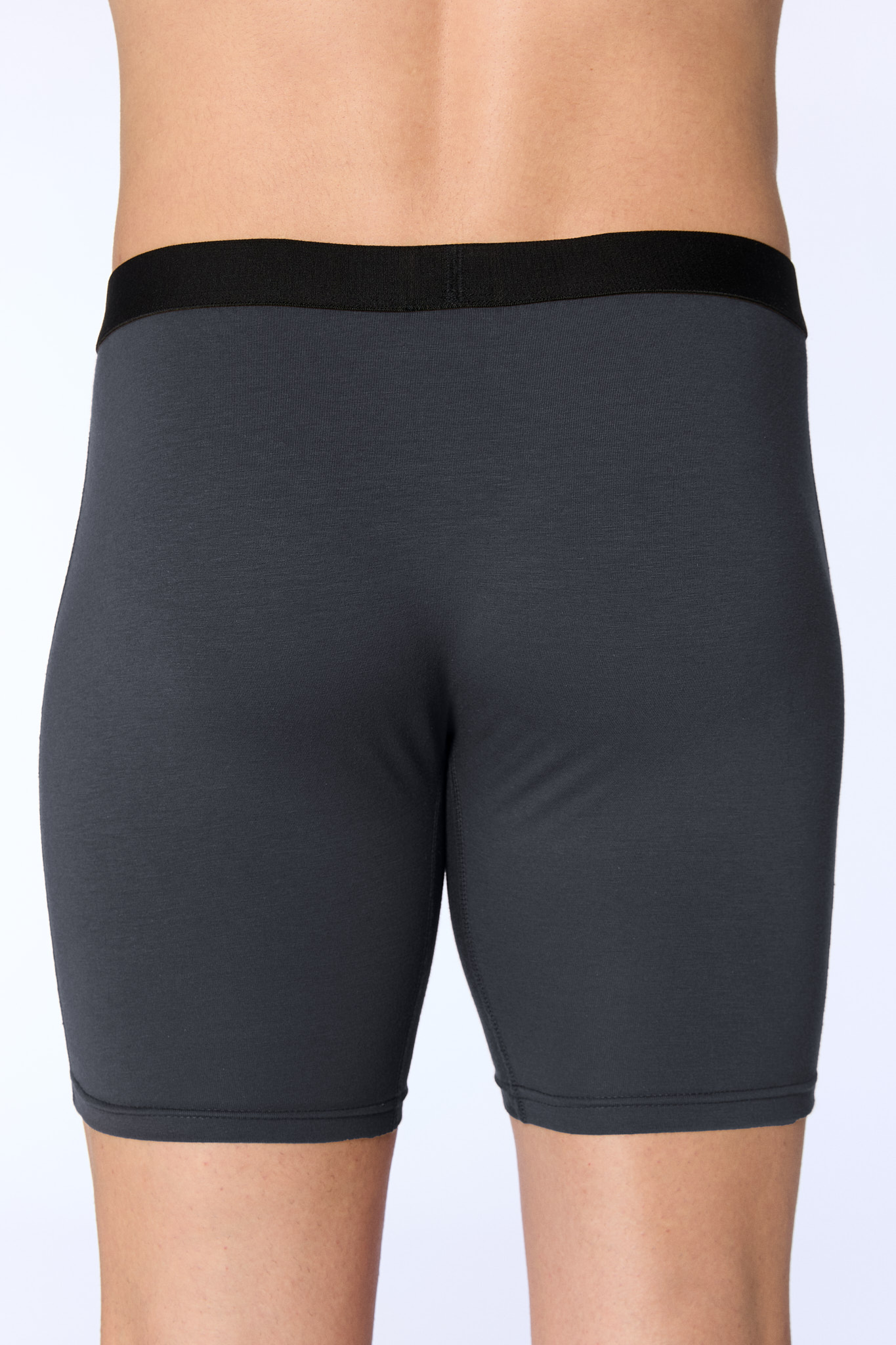Lange Trunkshorts, die eng anliegen und in mittlere Länge auf dem Oberschenkel sitzen.
